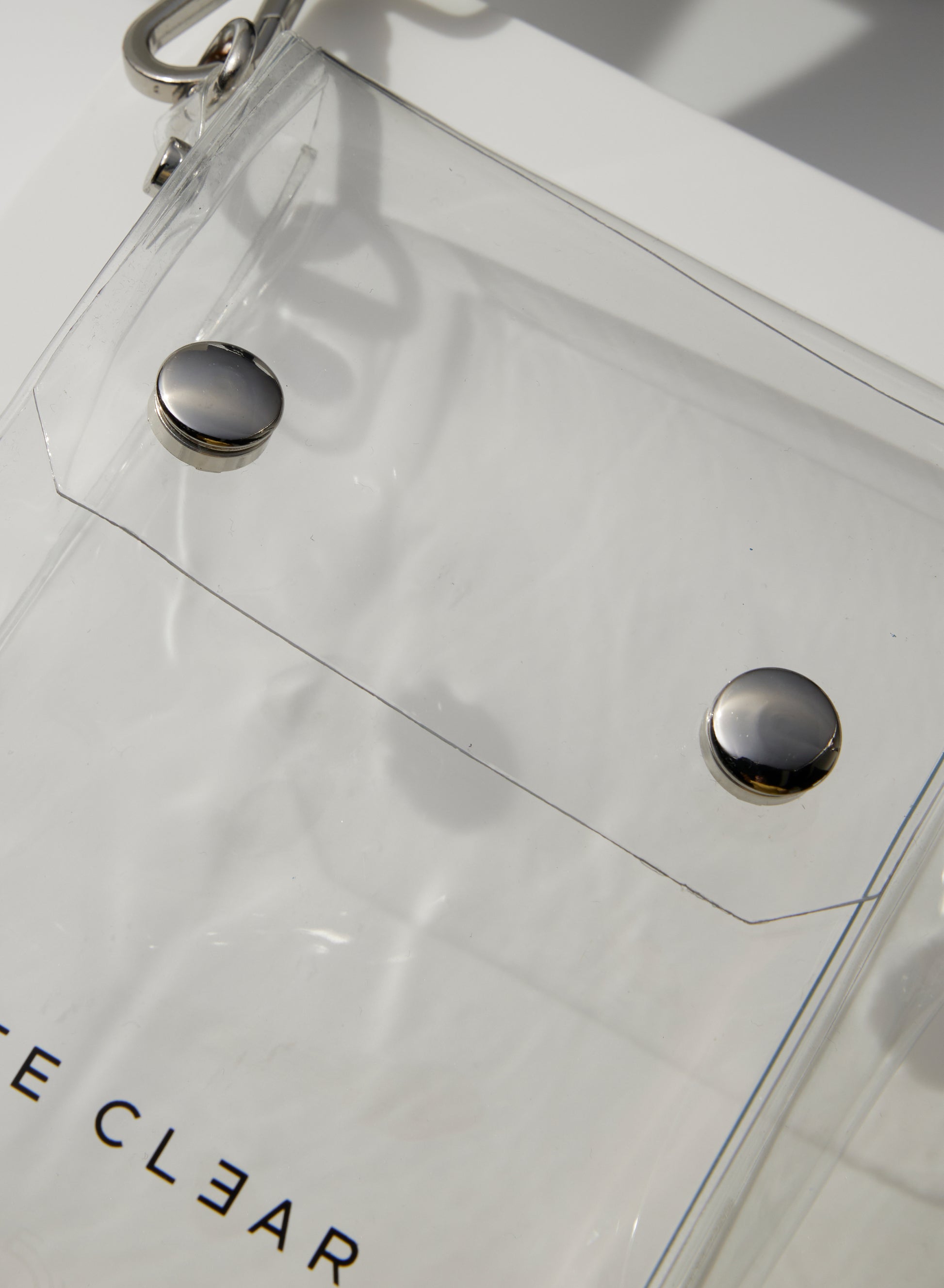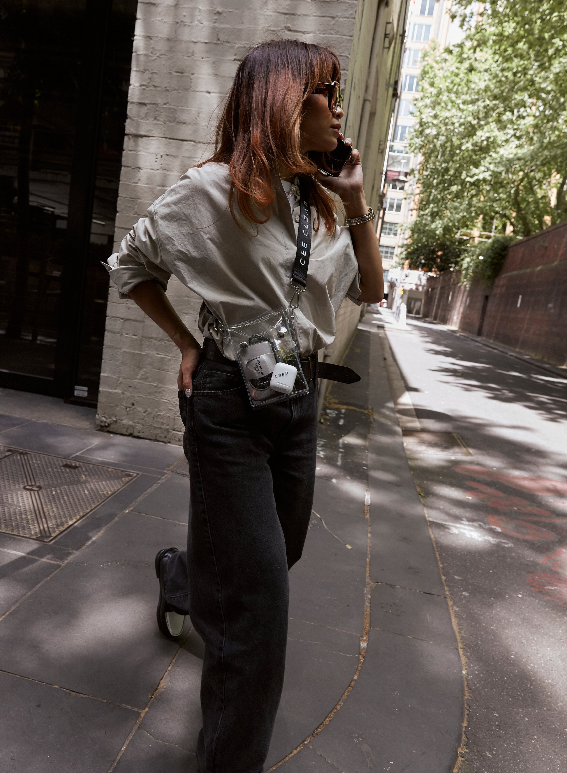 An everyday clear bag so sleek, transparent and lightweight you might forget you’re wearing it. That is, until you catch yourself on a reflective surface, and see the detachable bold black statement strap. It’s an attention grab in the best possible way.